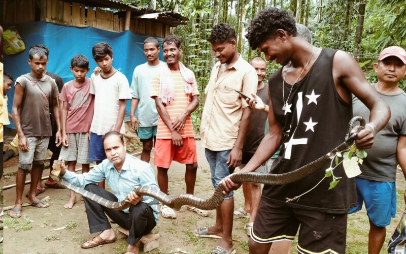 प्रसिद्ध सर्प प्रेमी सैयद नैम बाबुन नामका एक युवकले सोमबार दिउँसो २:३० बजे नगरकाटा ब्लकको न्यासाली चिया बगानको लाइन काटा क्षेत्रमा १२ फिट लामो किङ कोब्रा सर्प समातेर खुनिया रेन्जका वनकर्मीहरूलाई बुझाए।