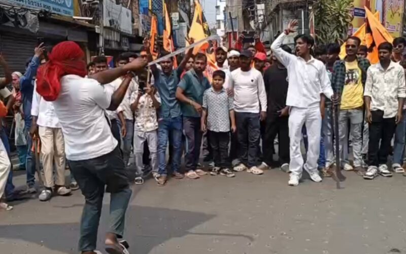 पश्चिम बंगालको मालदा जिल्लाको अंग्रेजी बजारमा आज आयोजित राम नवमी जुलुसमा हतियारको खुला प्रदर्शन देखियो। शहरको पल्लीश्री मैदानबाट सुरु भएको भव्य र्यालीमा रामदा, हंसुवा र कटारी जस्ता परम्परागत हतियारहरूले सजिएका राम भक्तहरूको ठूलो संख्यामा सहभागिता थियो।
