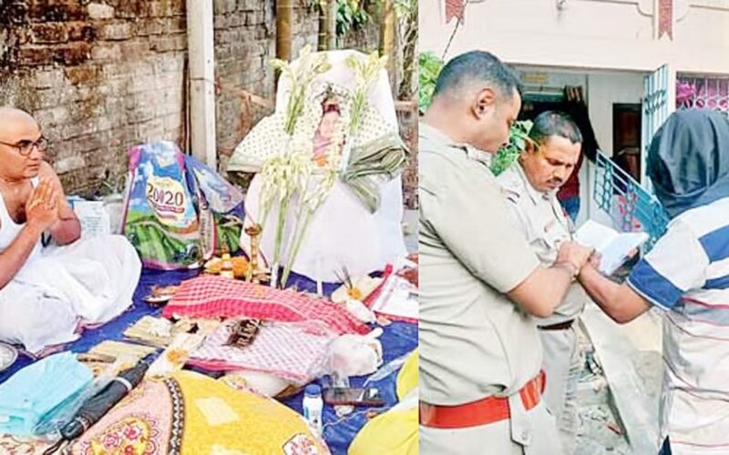 एउटै समयमा श्राद्ध र हत्या घटनाको पुनर्निर्माण। एकातिर घरको आँगनमा सानो छोराले आमाको श्राद्ध कर्म गर्दै थिए। आफन्तहरू पनि उपस्थित थिए। त्यसै समयमा कालो कपड़ाले अनुहार ढाकिएको र हातकड़ी लगाइएको अवस्थामा पुलिसको घेराबन्दीमा आमाको हत्या आरोपमा पक्राउ परेका जेठो छोरा घरभित्र प्रवेश गरे। घटनाको पुनर्निर्माणका लागि आरोपीलाई आफ्नै घरमा ल्याइएको थियो। गएको आइतवार राति मैनागुड़ीको चौथो वार्ड निवासी मीरारानी साहाको हत्या भएको थियो। आमाको हत्या आरोपमा जेठो छोरा सुशान्त साहालाई पुलिसले पक्राउ गरेको थियो।